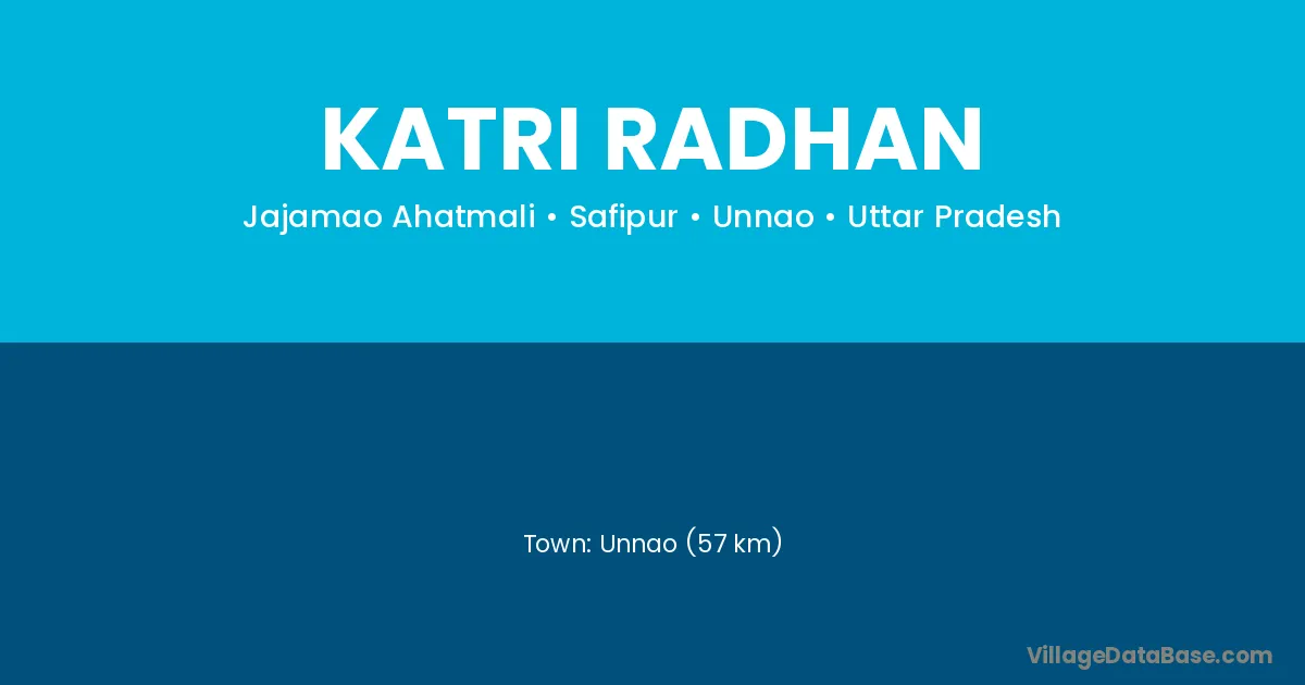 Unnao (57 km) is the nearest town to Katri Radhan village for major economic activities and is located approximately 57 km away.