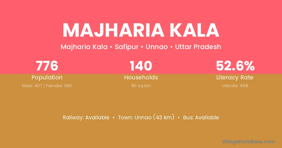 Unnao (43 km) is the nearest town to Majharia Kala village for major economic activities and is located approximately 43 km away.
