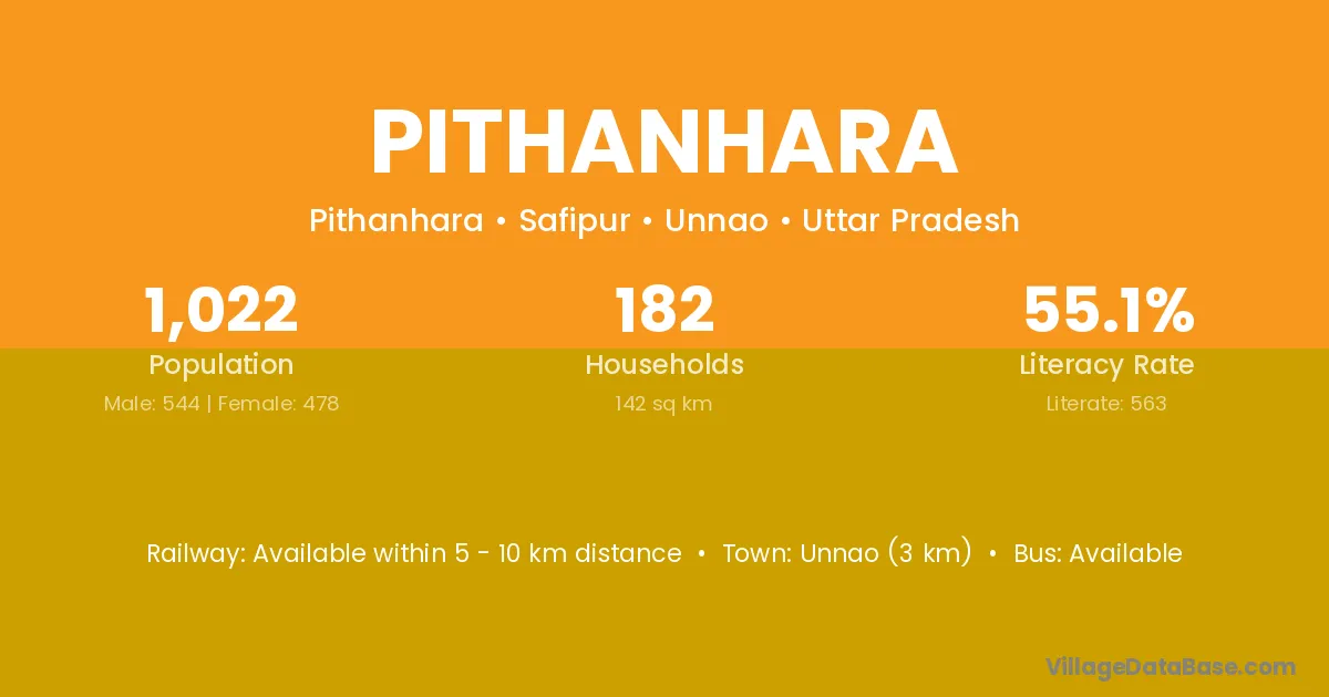 Unnao (3 km) is the nearest town to Pithanhara village for major economic activities and is located approximately 3 km away.
