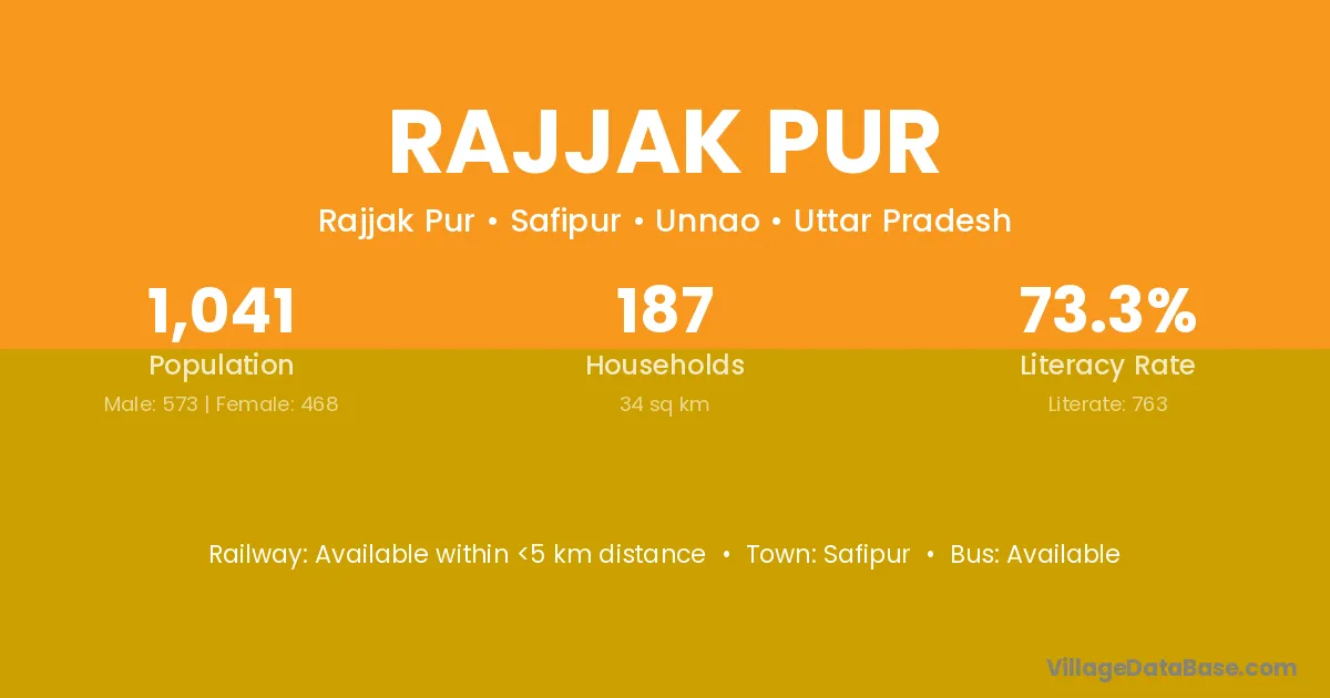 Rajjak Pur village has a total population of 1,041 people, of which 573 are males and 468 are females.
