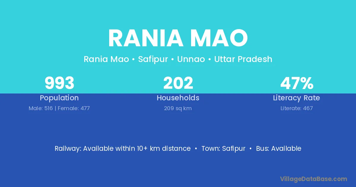 Rania Mao village has a total population of 993 people, of which 516 are males and 477 are females.
