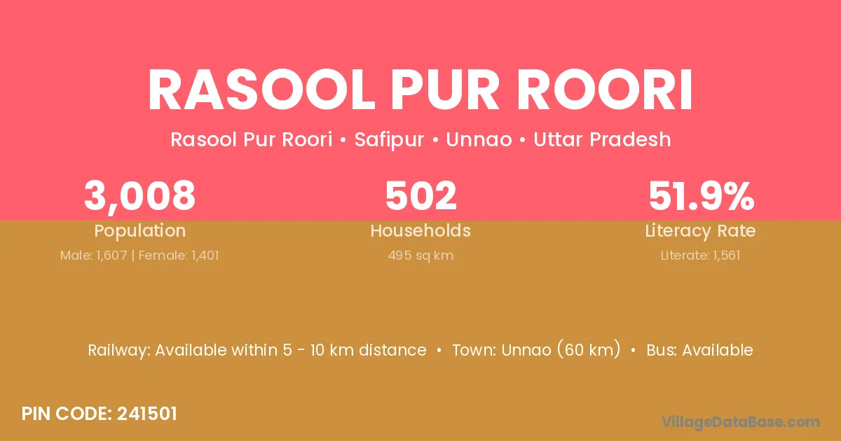 According to Census 2011 information, the village code of Rasool Pur Roori village is 241501.