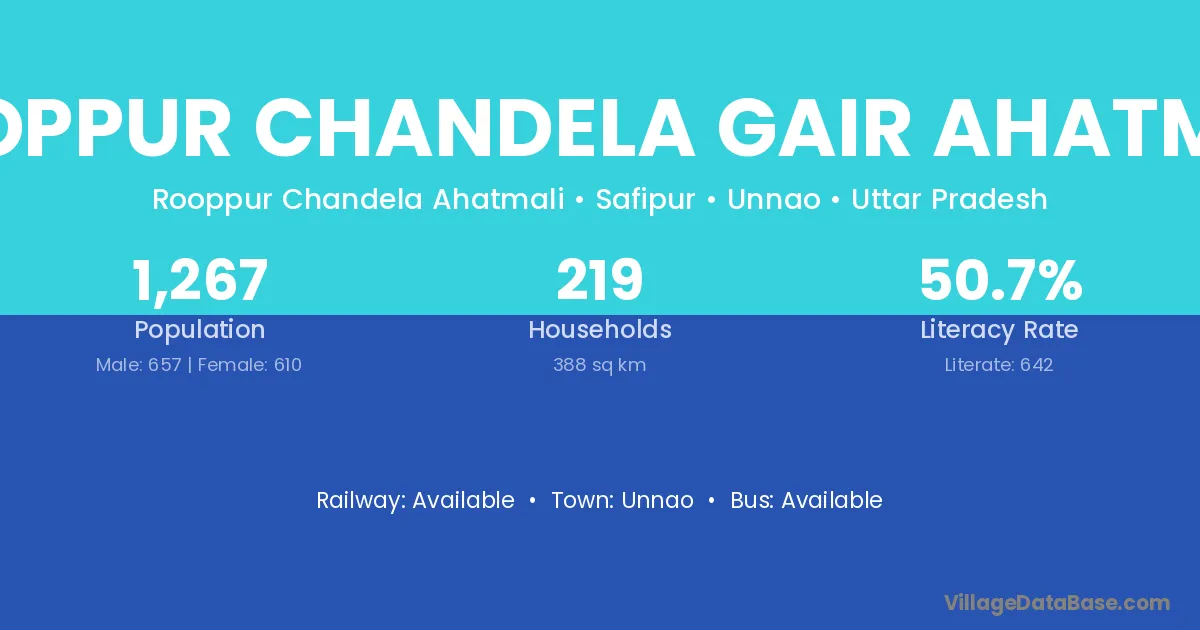 Rooppur Chandela Gair Ahatmali village has a total population of 1,267 people, of which 657 are males and 610 are females.