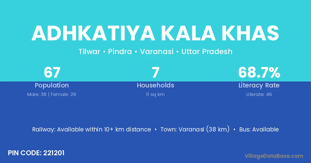Varanasi (38 km) is the nearest town to Adhkatiya Kala Khas village for major economic activities and is located approximately 38 km away.