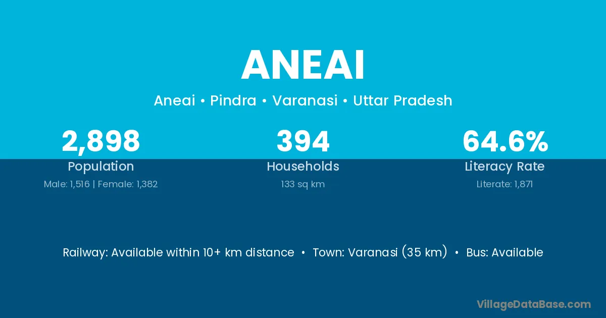 Varanasi (35 km) is the nearest town to Aneai village for major economic activities and is located approximately 35 km away.