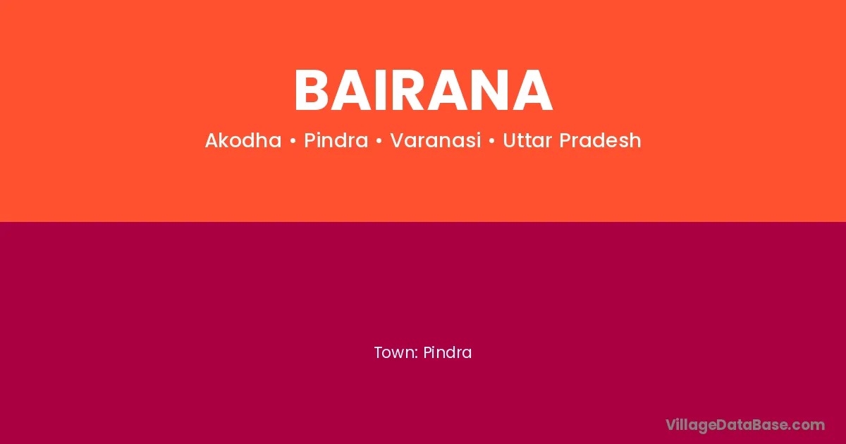 Pindra is the nearest town to Bairana village for major economic activities