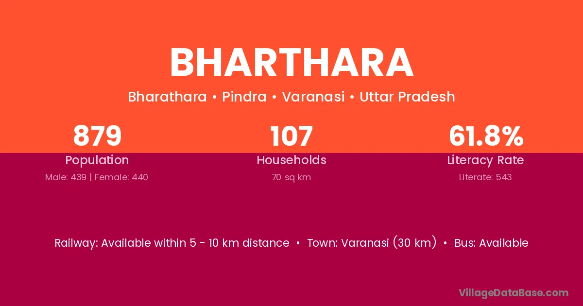 Bharthara village has a total population of 879 people, of which 439 are males and 440 are females.