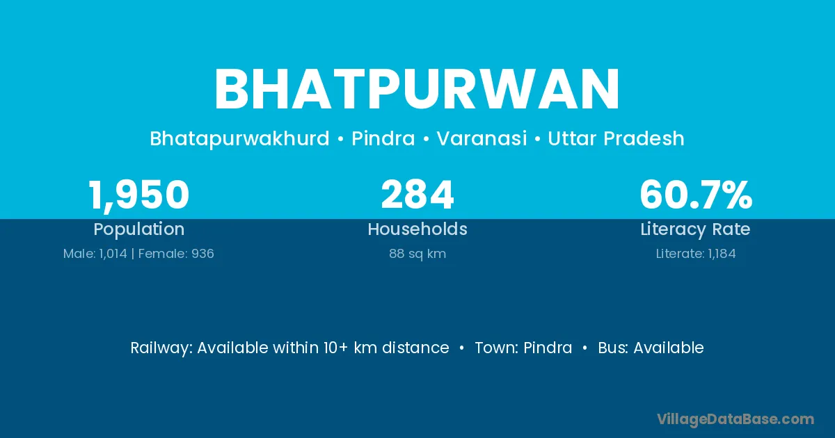 Pindra is the nearest town to Bhatpurwan village for major economic activities