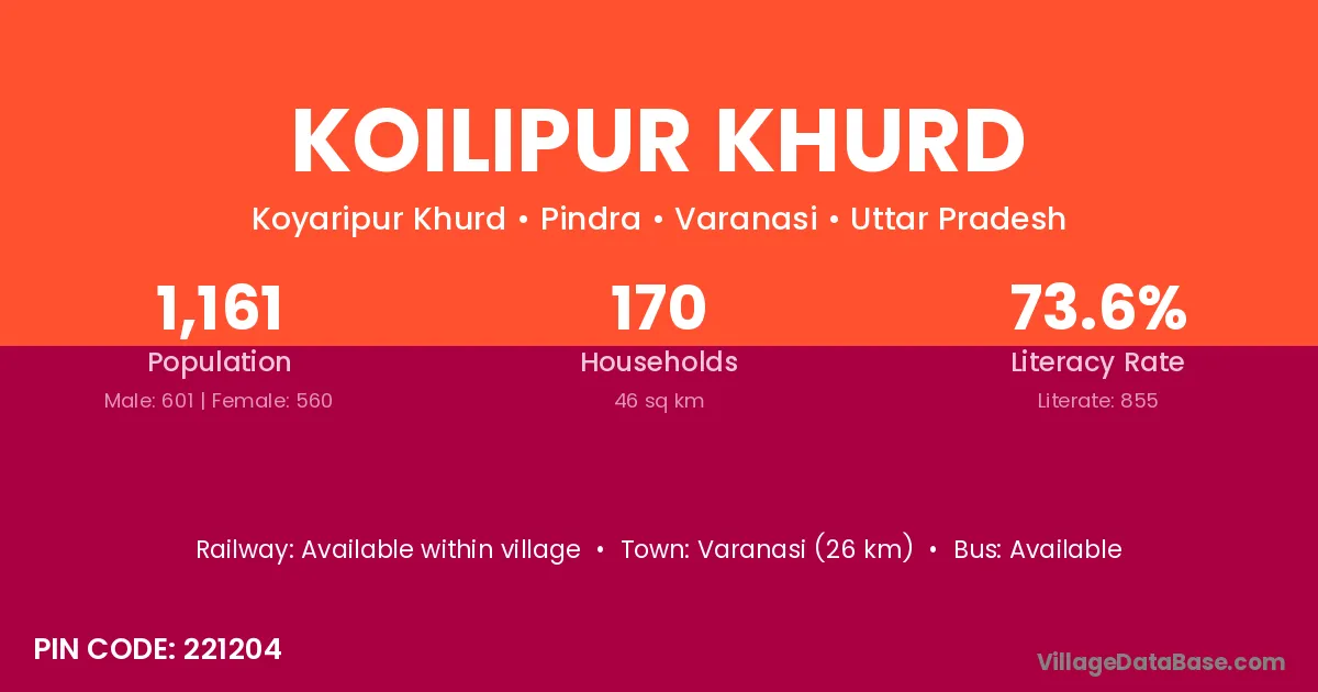 Koilipur Khurd village has a total population of 1,161 people, of which 601 are males and 560 are females.