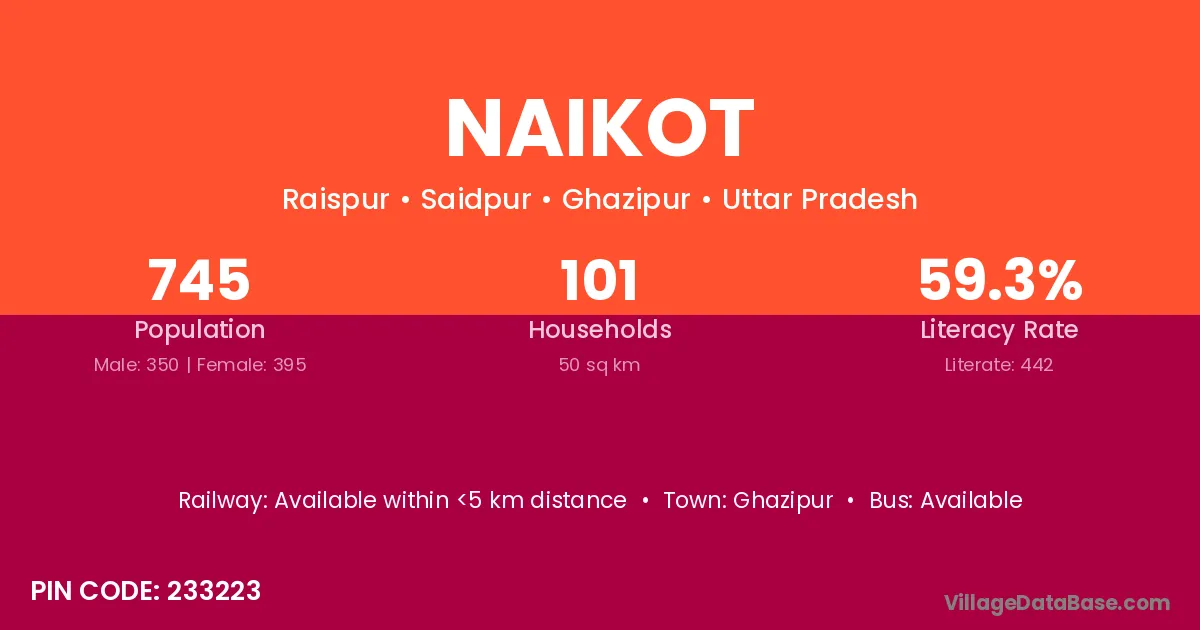 Varanasi (25 km) is the nearest town to Naikot village for major economic activities and is located approximately 25 km away.