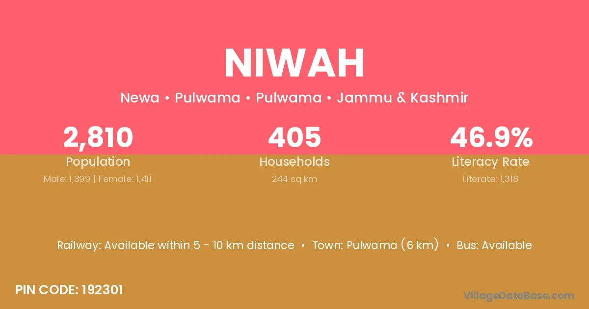 According to Census 2011 information, the village code of Niwah village is 221204.