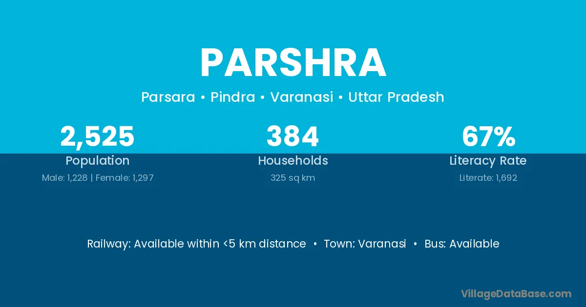 Parshra village has a total population of 2,525 people, of which 1,228 are males and 1,297 are females.