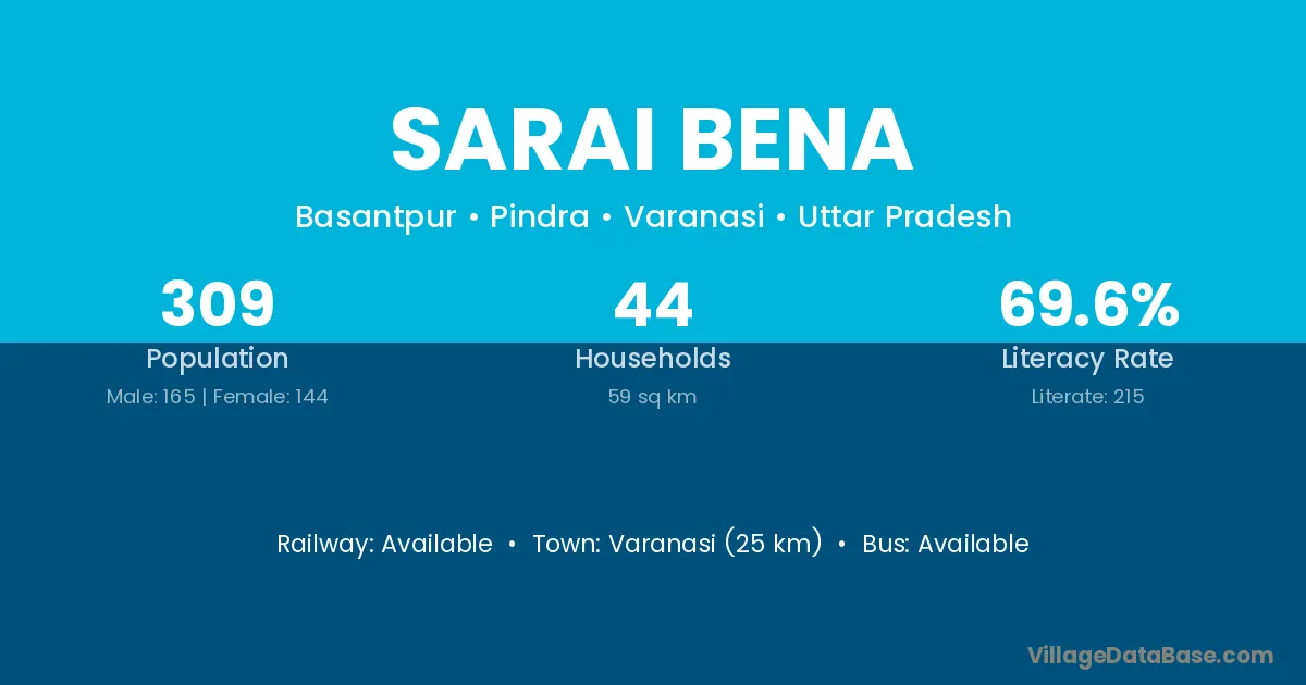Varanasi (25 km) is the nearest town to Sarai Bena village for major economic activities and is located approximately 25 km away.