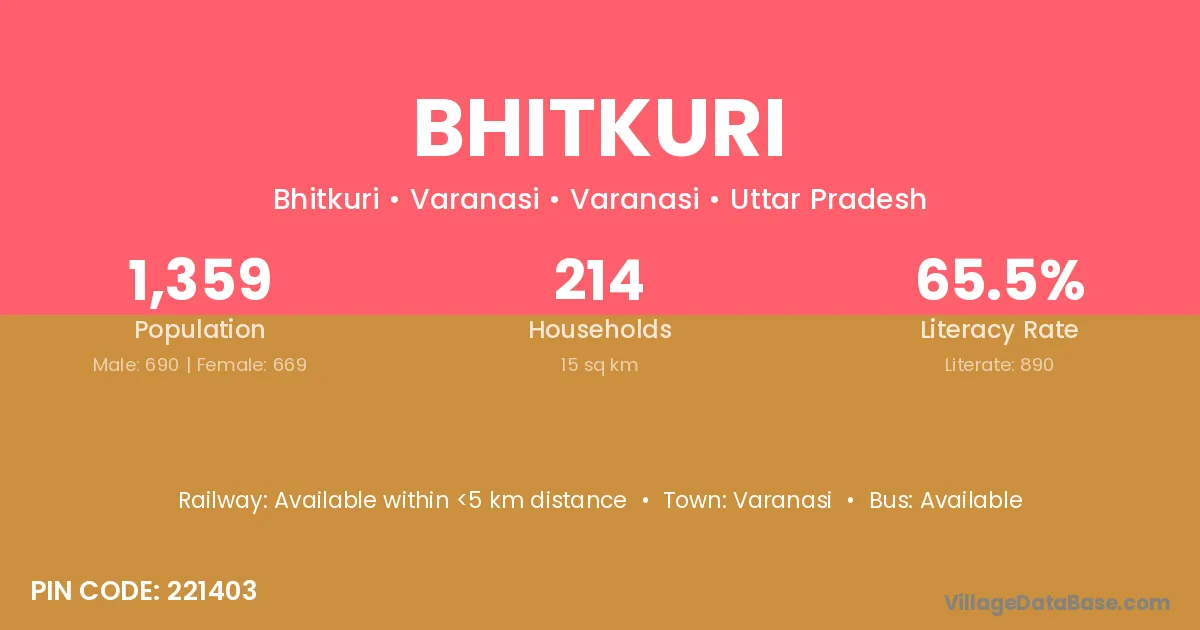 Bhitkuri village has a total population of 1,359 people, of which 690 are males and 669 are females.