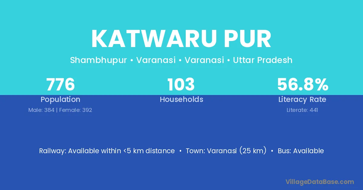 Varanasi (25 km) is the nearest town to Katwaru Pur village for major economic activities and is located approximately 25 km away.
