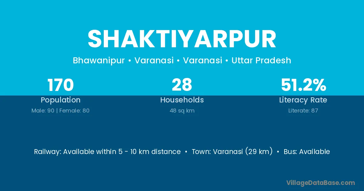 Varanasi (29 km) is the nearest town to Shaktiyarpur village for major economic activities and is located approximately 29 km away.