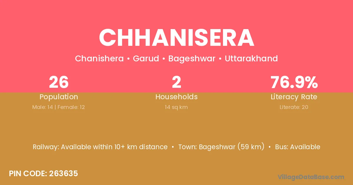 Bageshwar (59 km) is the nearest town to Chhanisera village for major economic activities and is located approximately 59 km away.