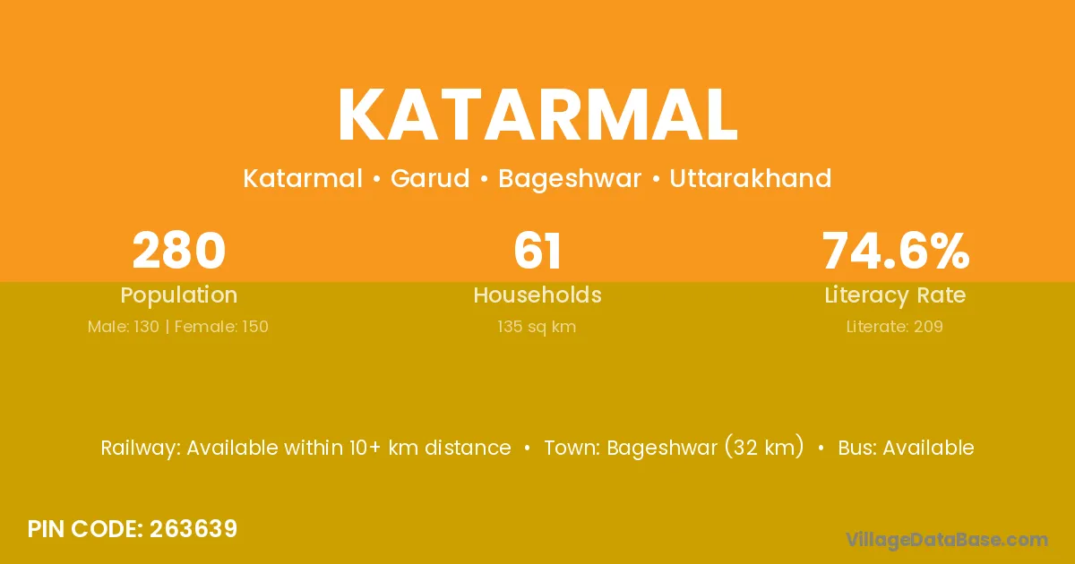 Bageshwar (32 km) is the nearest town to Katarmal village for major economic activities and is located approximately 32 km away.