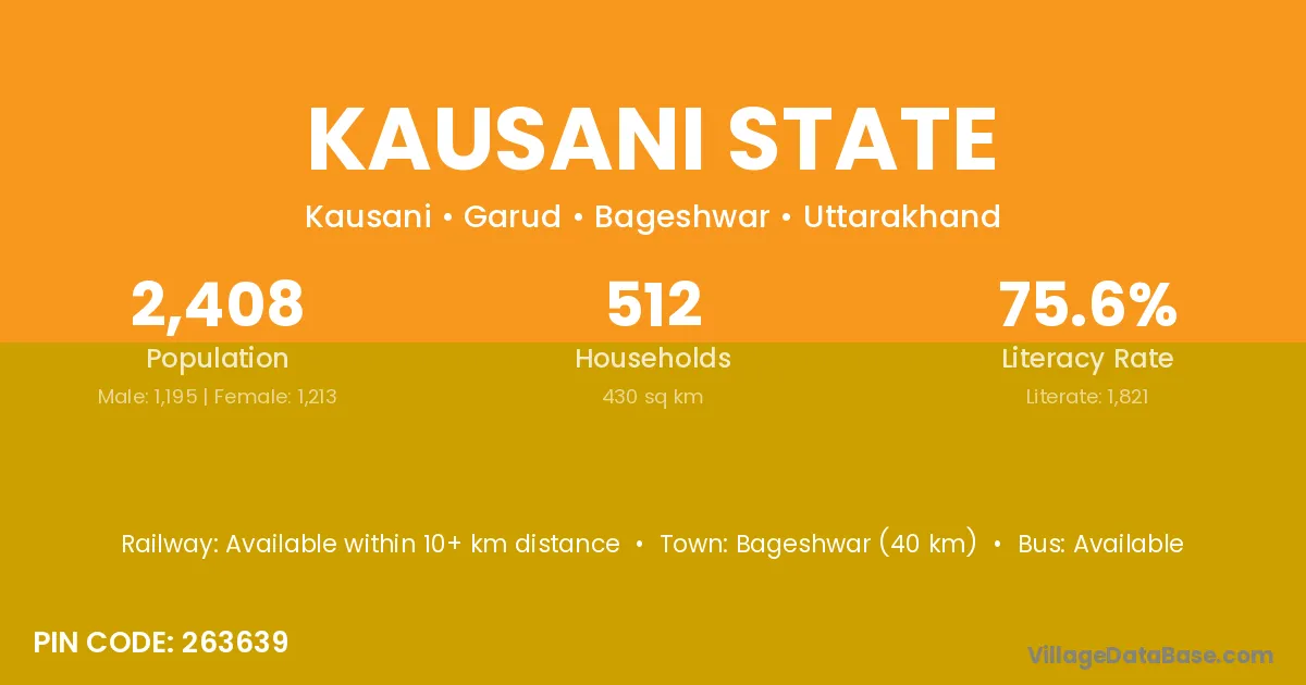 According to Census 2011 information, the village code of Kausani State village is 263639.
