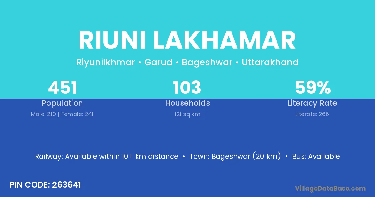 Bageshwar (20 km) is the nearest town to Riuni Lakhamar village for major economic activities and is located approximately 20 km away.
