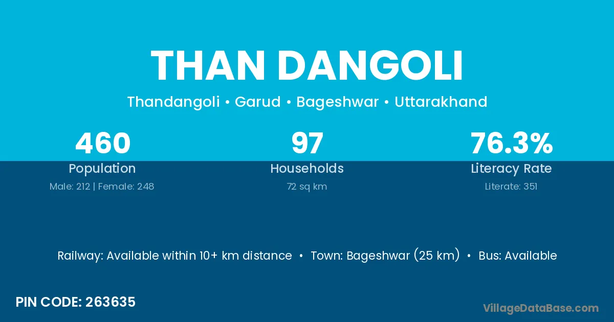 Bageshwar (25 km) is the nearest town to Than Dangoli village for major economic activities and is located approximately 25 km away.