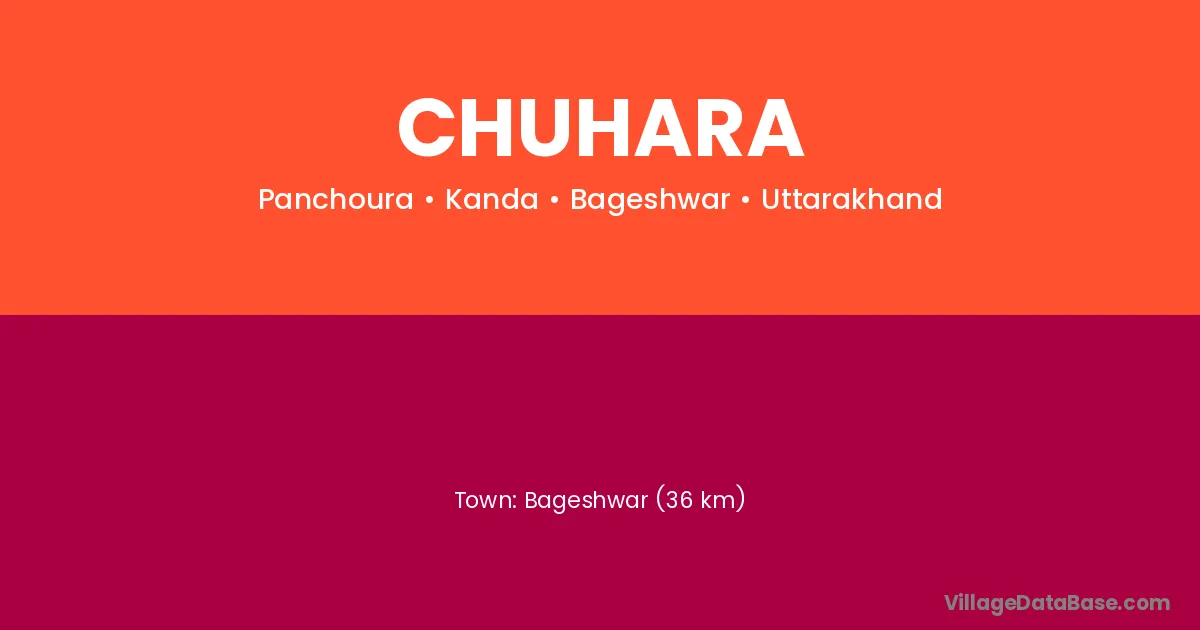 Bageshwar (36 km) is the nearest town to Chuhara village for major economic activities and is located approximately 36 km away.