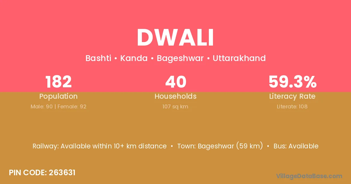 Bageshwar (59 km) is the nearest town to Dwali village for major economic activities and is located approximately 59 km away.