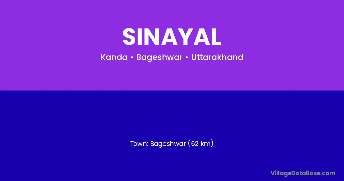 Bageshwar (62 km) is the nearest town to Sinayal village for major economic activities and is located approximately 62 km away.