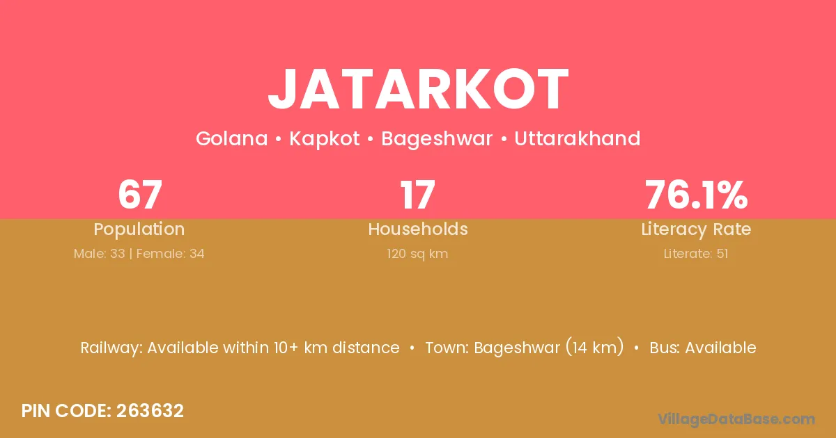 Bageshwar (14 km) is the nearest town to Jatarkot village for major economic activities and is located approximately 14 km away.