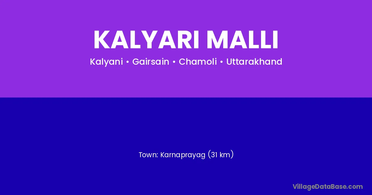 Karnaprayag (31 km) is the nearest town to Kalyari Malli village for major economic activities and is located approximately 31 km away.
