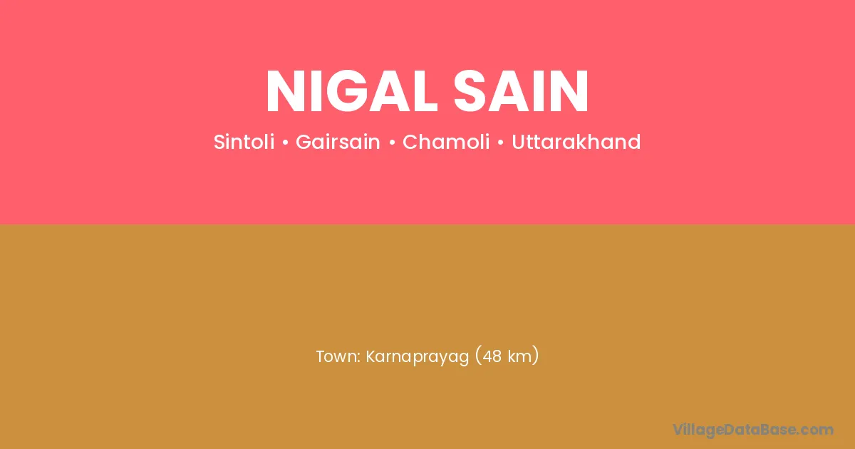 Karnaprayag (48 km) is the nearest town to Nigal Sain village for major economic activities and is located approximately 48 km away.