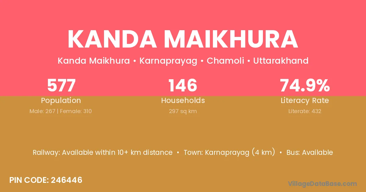 Karnaprayag (4 km) is the nearest town to Kanda Maikhura village for major economic activities and is located approximately 4 km away.