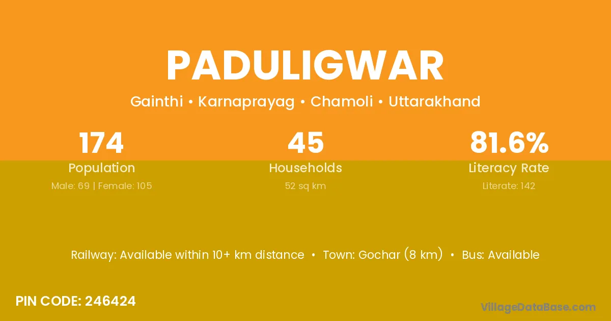 Gochar (8 km) is the nearest town to Paduligwar village for major economic activities and is located approximately 8 km away.