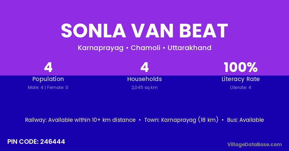 Karnaprayag (18 km) is the nearest town to Sonla Van Beat village for major economic activities and is located approximately 18 km away.
