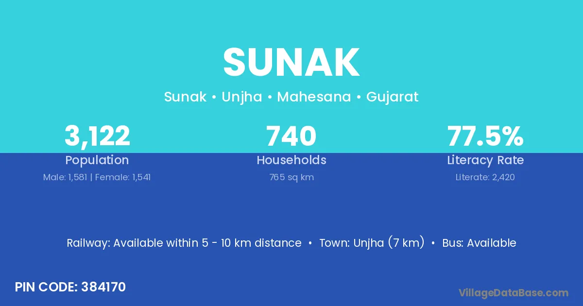 According to Census 2011 information, the village code of Sunak village is 246429.