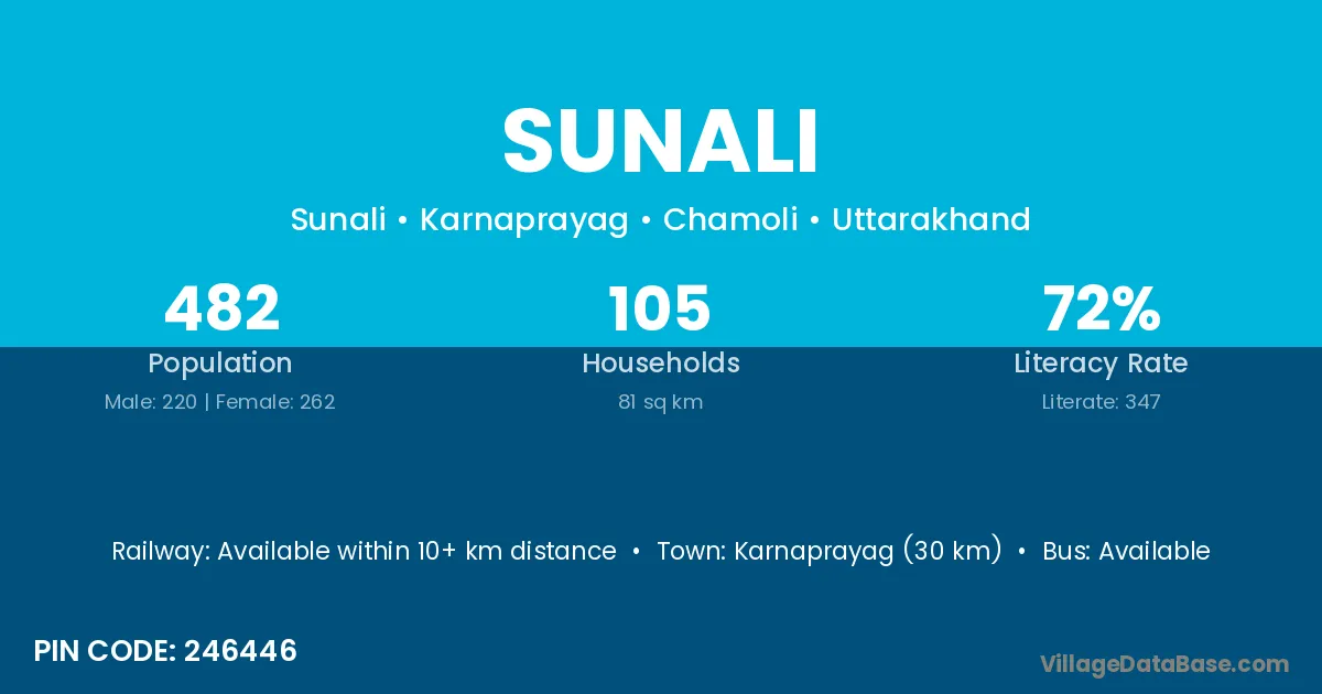 Karnaprayag (30 km) is the nearest town to Sunali village for major economic activities and is located approximately 30 km away.