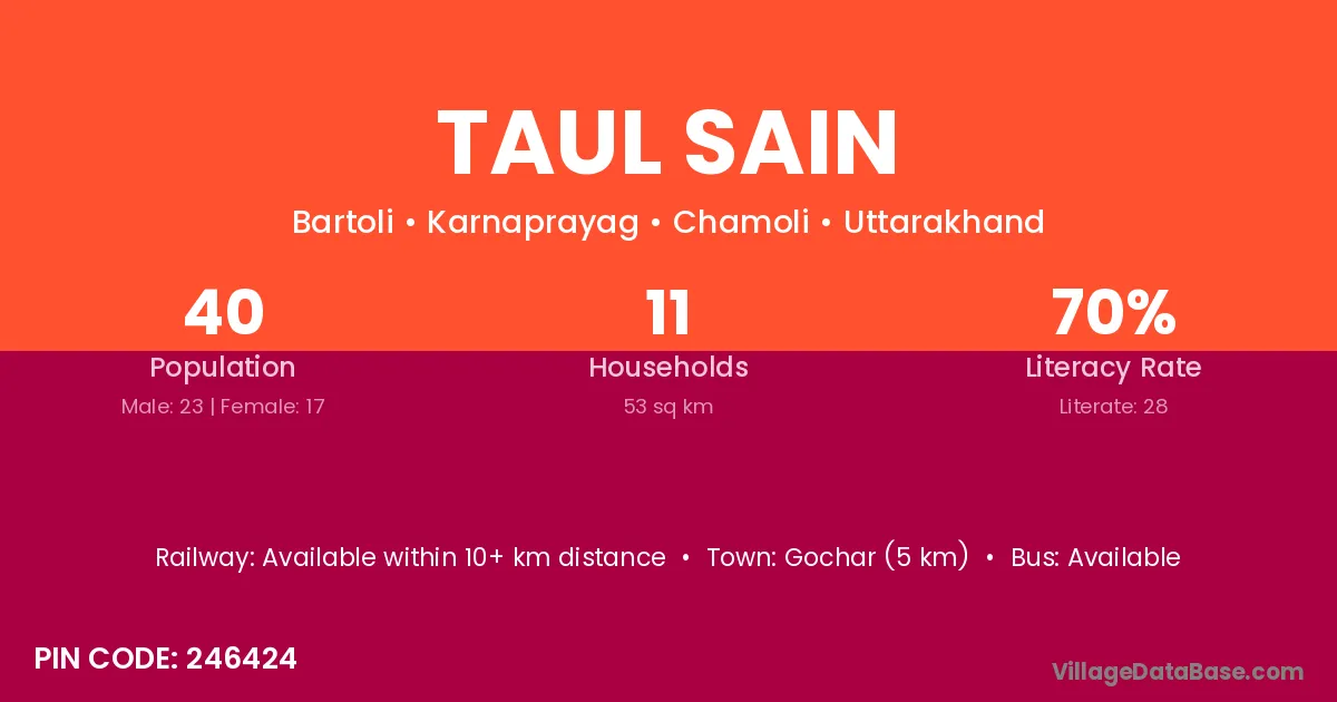 Gochar (5 km) is the nearest town to Taul Sain village for major economic activities and is located approximately 5 km away.