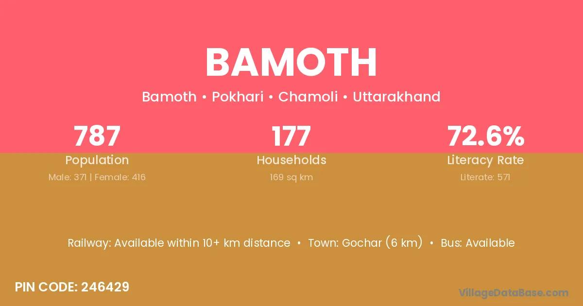 Gochar (6 km) is the nearest town to Bamoth village for major economic activities and is located approximately 6 km away.