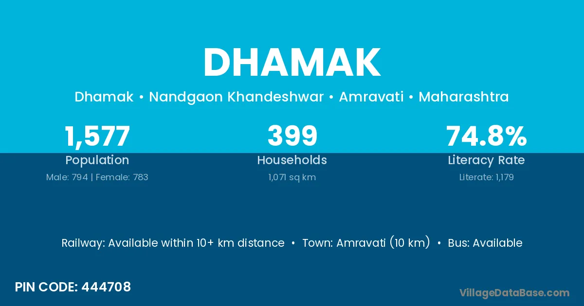 Nandprayag (42 km) is the nearest town to Dhamak village for major economic activities and is located approximately 42 km away.