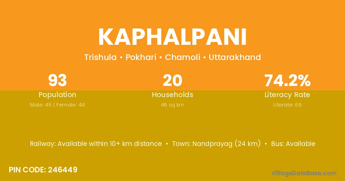 Nandprayag (24 km) is the nearest town to Kaphalpani village for major economic activities and is located approximately 24 km away.