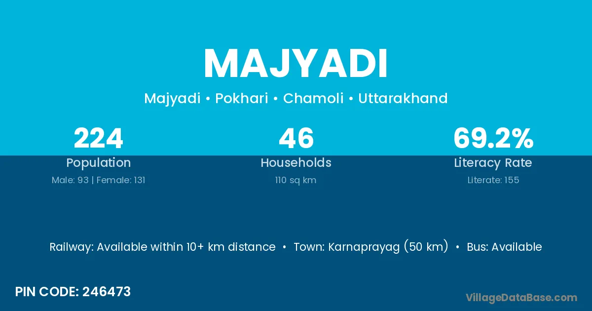 Karnaprayag (50 km) is the nearest town to Majyadi village for major economic activities and is located approximately 50 km away.