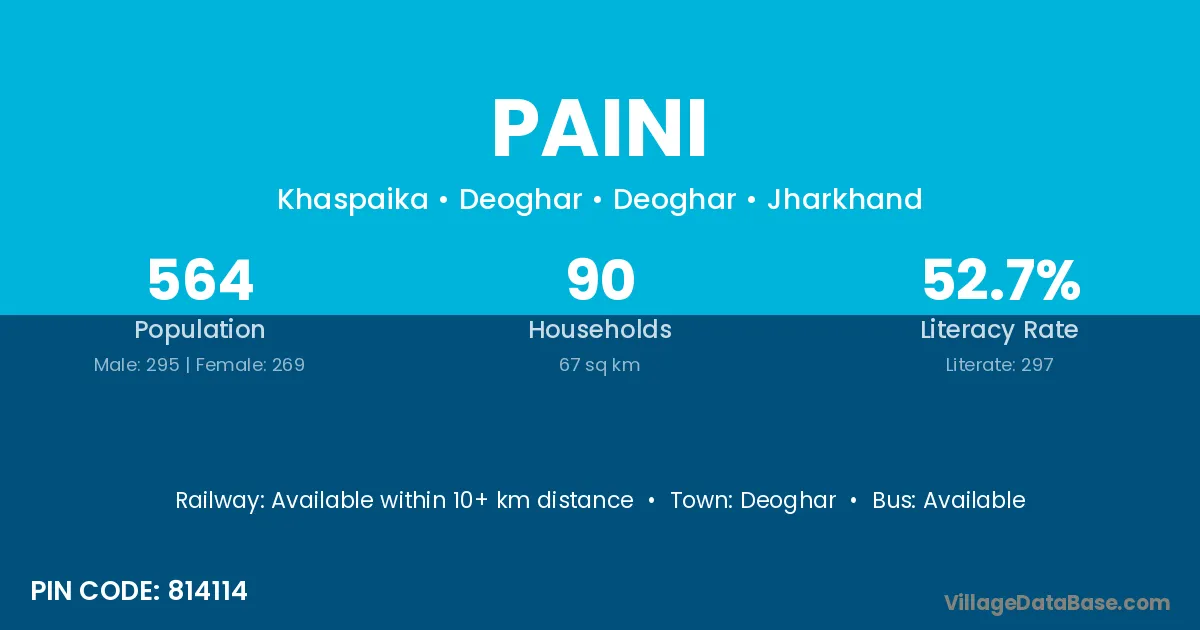 The literacy rate of Paini village is 63.72%. Male literacy stands at 73.63% and female literacy at 56.45%.