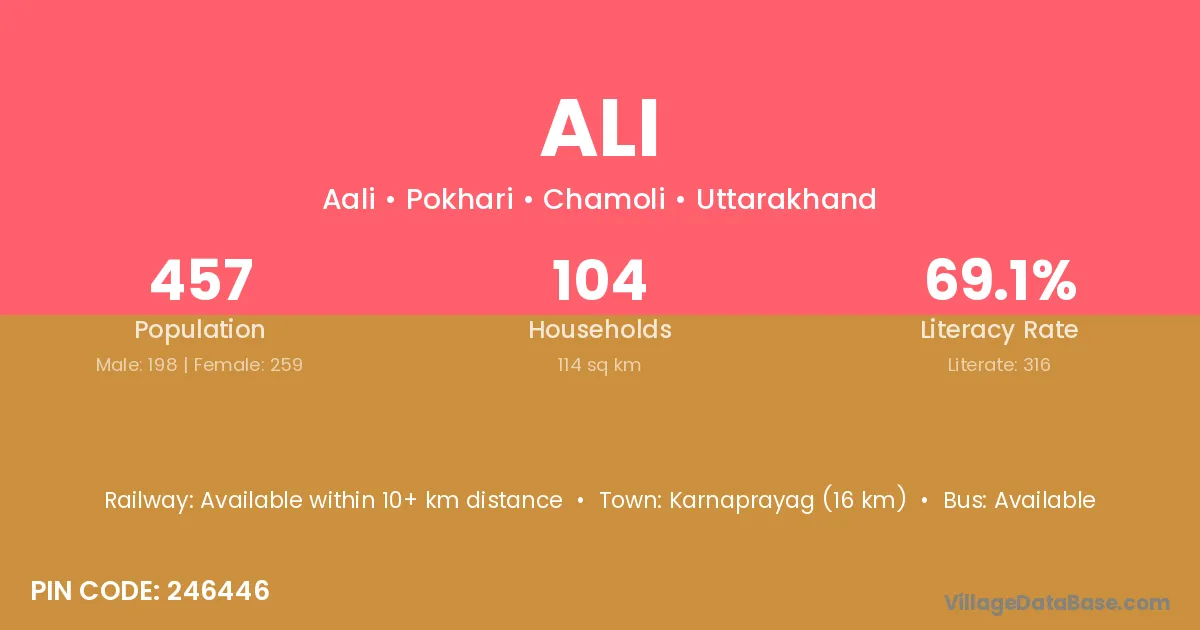 Karnaprayag (31 km) is the nearest town to Ali village for major economic activities and is located approximately 31 km away.
