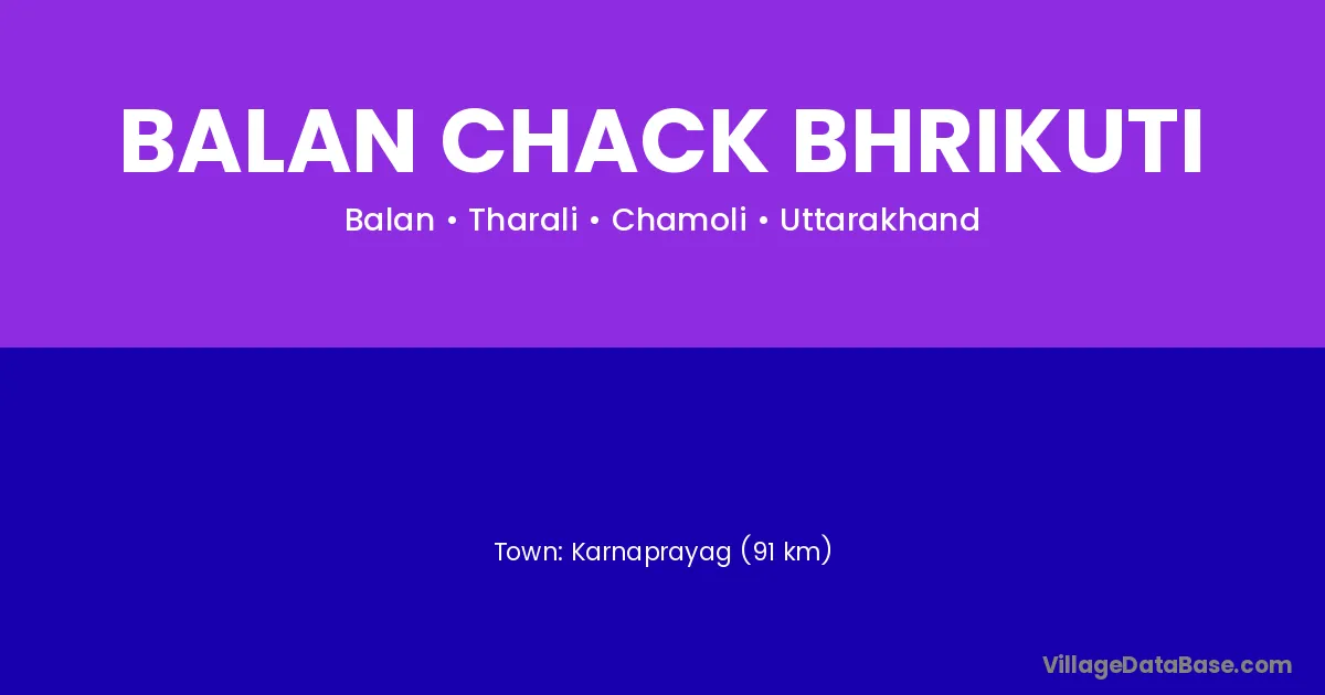 Karnaprayag (91 km) is the nearest town to Balan Chack Bhrikuti village for major economic activities and is located approximately 91 km away.