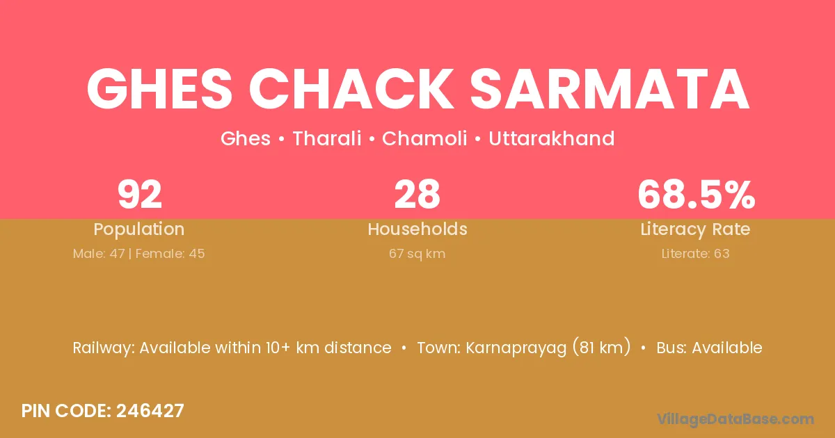 Karnaprayag (81 km) is the nearest town to Ghes Chack Sarmata village for major economic activities and is located approximately 81 km away.