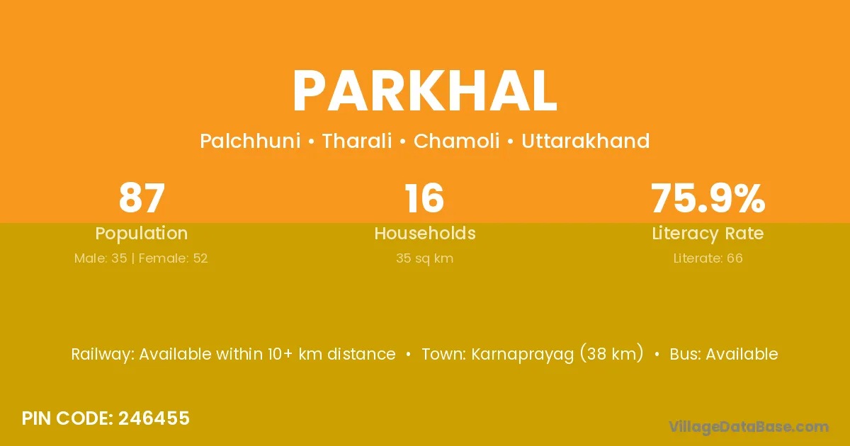 Karnaprayag (38 km) is the nearest town to Parkhal village for major economic activities and is located approximately 38 km away.