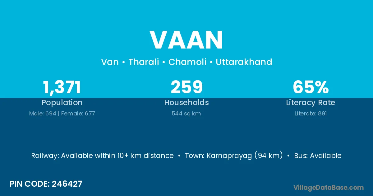 Karnaprayag (94 km) is the nearest town to Vaan village for major economic activities and is located approximately 94 km away.