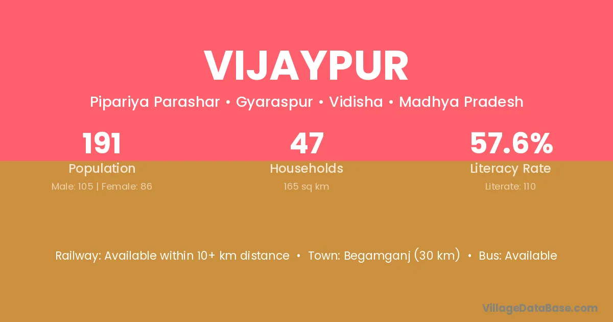 Vijaypur village has a total population of 198 people, of which 87 are males and 111 are females.