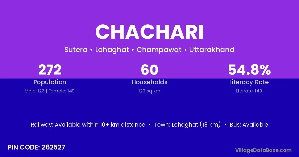 Chachari village is located in the Lohaghat Tehsil of the Champawat district in Uttarakhand .