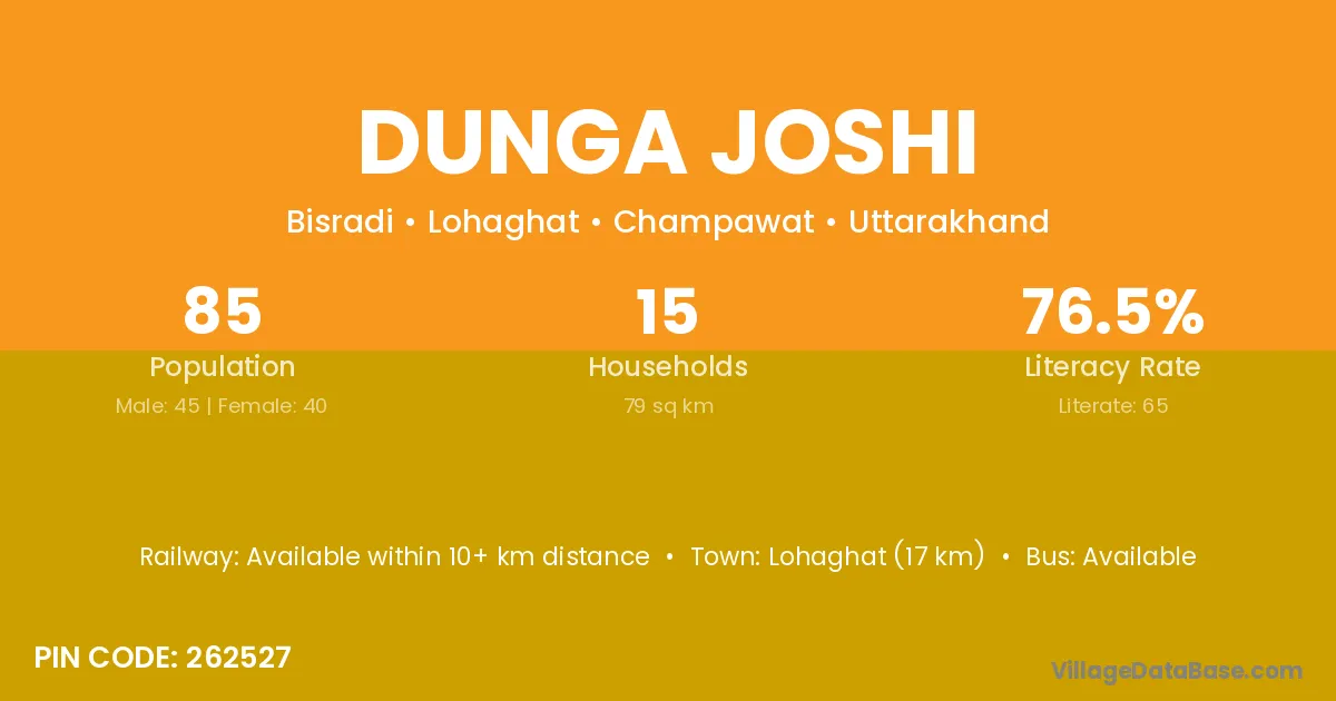 Dunga Joshi village has a total population of 85 people, of which 45 are males and 40 are females.